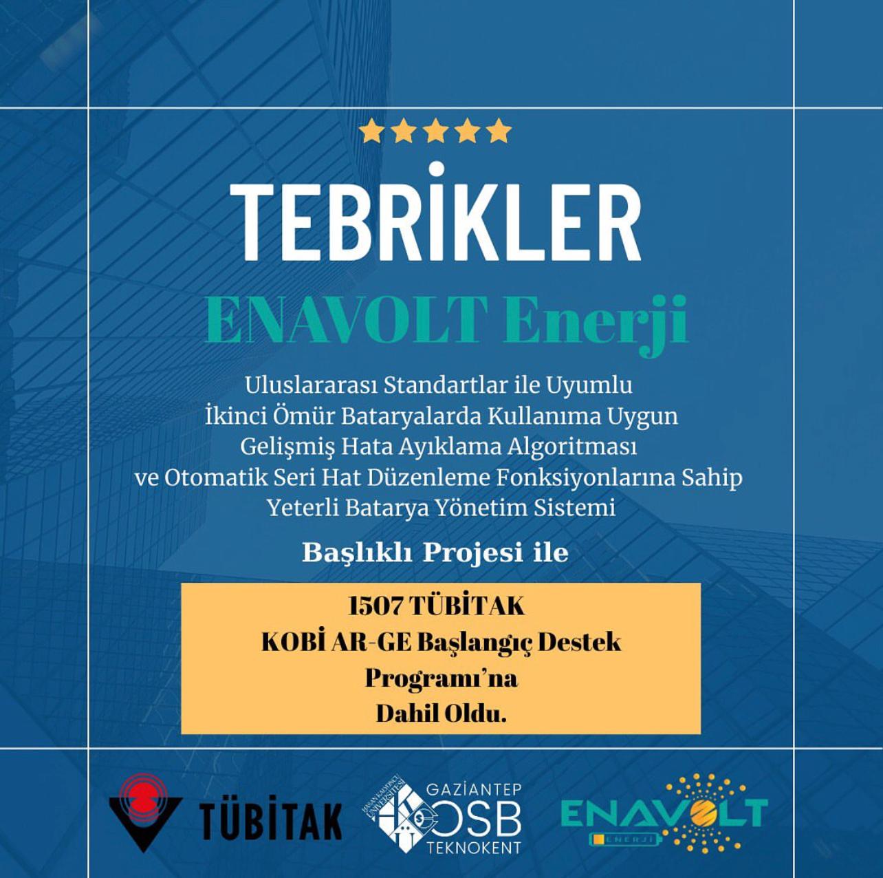 Tebrikler ENAVOLT Enerji! Tek Kaynak Kullanarak Birden Fazla Elektrikli Cihaza Verimli Şekilde Enerji Dağıtımı Sağlayan Akıllı Şarj Çoklayıcı Sistem” başlıklı projeleri, 1507 TÜBİTAK KOBİ AR-GE Başlangıç Destek Programı’na dahil olmaya hak kazandı! Firmalarımızdan; Yenilikçi çözümleriyle enerji verimliliğine katkı sağlayan ENAVOLT Enerji’yi kutluyor, başarılarının devamını diliyoruz.